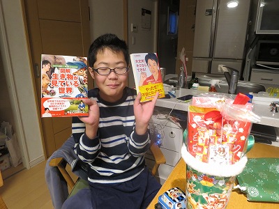 Sが好きな生き物の本と、松岡さんの中学生向きの本。 |