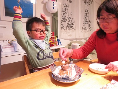 お待ちかねのケーキ。 ん?5個? 最後にSの好きなチョコを買い足したから、とおママ。 凄い効果だ、・・・。S |