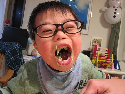 一口食べたS、笑顔で、