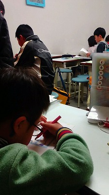 隣りの女の子の本をジッと見ているH。