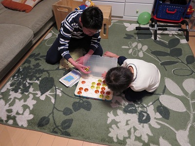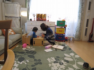 おもちゃにスッと手を伸ばしたH、でも1人分のスペースとおもちゃしかない。