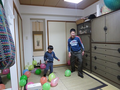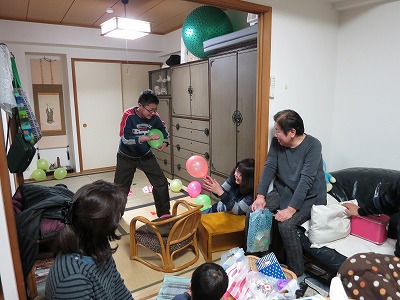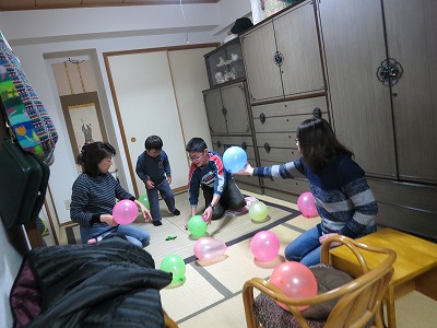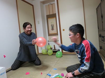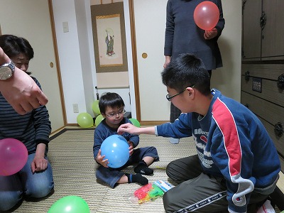 風船を割って、中の紙の番号の商品が頂けるのだ。 |