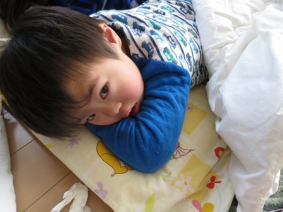 早く寝かすも2時間於きに嘔気を催し・・・。