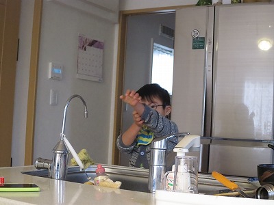 H、朝から別人のようにお手伝い。