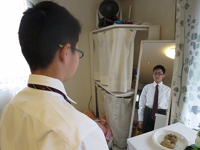 ネクタイの練習。 なら着替えろよ |