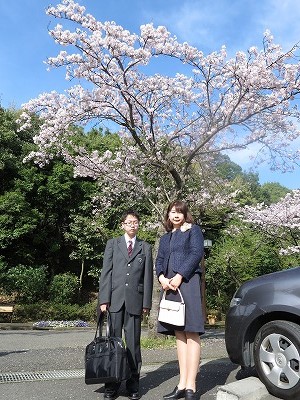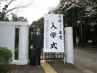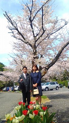 よく晴れ、暖かな入学式。 桜も満開。 |
