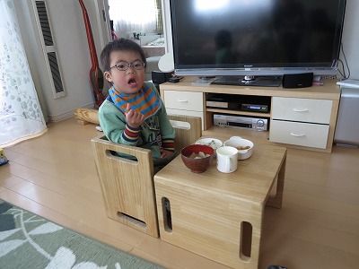 何だか下で食べたがることが多い。 椅子、小さくなったな・・・。 |