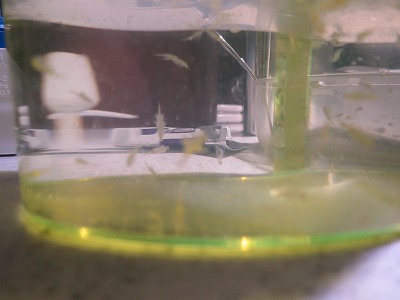 エアレーションしないと酸欠で育たないと思ったが、水替えも含め、餌やりだけで大きくなった。