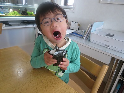 とこが昼前、Hが卓上にあったおにぎりを食べたいと言い出した。 |