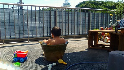 コイツの中では、睡蓮鉢は「浸かるもの」と認識されているに違いない。