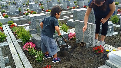 墓前に。 |