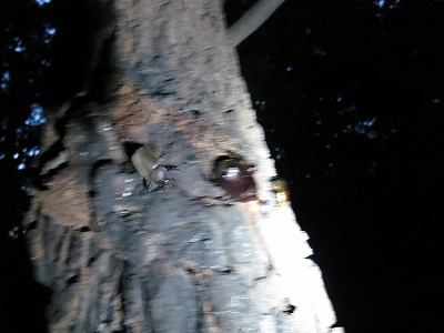 まだ樹液は少ないが、確実に出ている。 いたいた、クワだ。 |