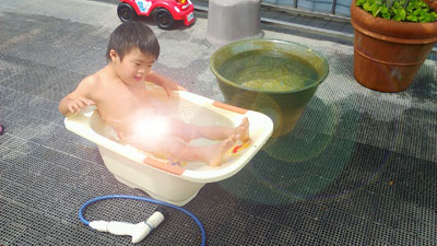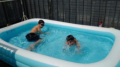 午後は、初プール。 Hの泳ぎはさらに進化している。 どんだけ風呂で泳いでんだ・・・? |