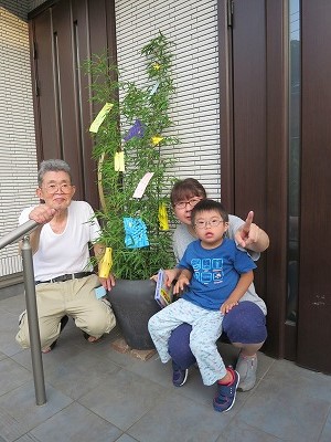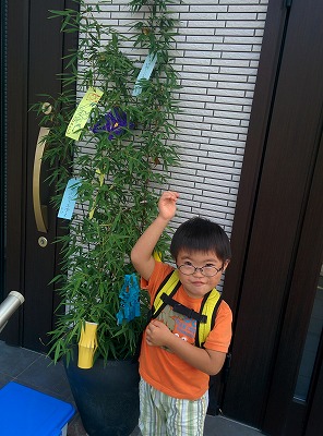 七夕の飾りつけ。 生きた竹、ライブ竹。 |