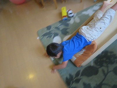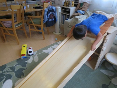 速いだろぉ〜! 味をしめて何度も滑っていた。 |