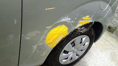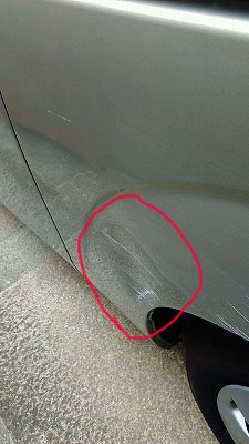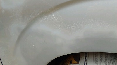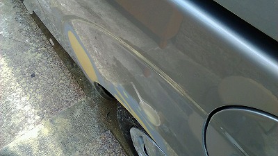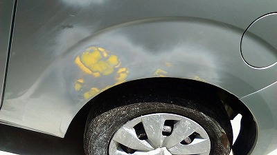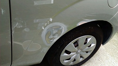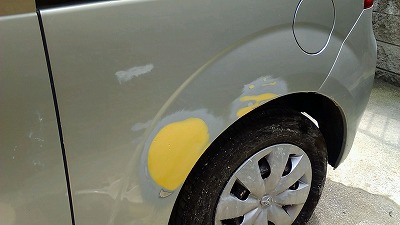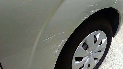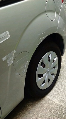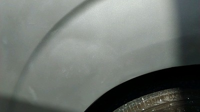 というわけで・・・。 左の後輪、タイヤハウスというのか? 左折の時に擦った傷。 |