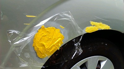 さて、下地の次は、いよいよパテ盛り。 パテにはラップを使って・・・。 |