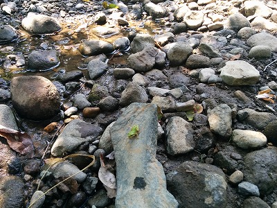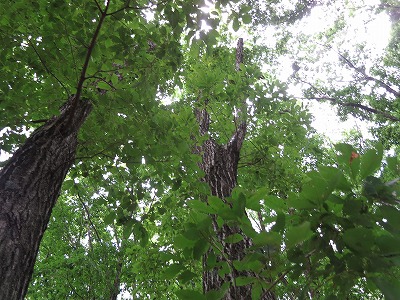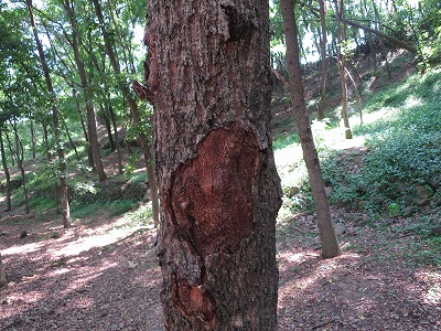 しかしおかしい。 沢山いた蝶が、1匹もいない。 蝶がいないということは・・・。 そう、樹液が出ていないのである。 大きなオスの死骸があった。 残念だが早々に退散す。 |