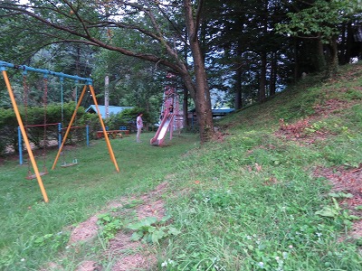 途中の公園。 子供がいないので、ホコリまみれ。 |