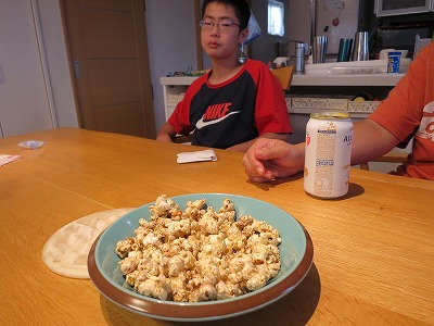 おやつは、ポップコーン。 これも、セルフ土産。 |