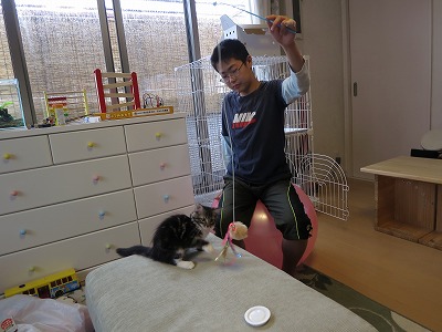 風邪気味で留守番してたS、大喜び。 勿論、セオリー通り、落ち着かせてからのお遊び。 |