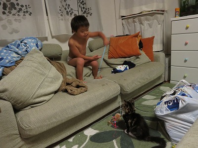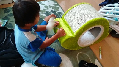 Cooのためのグッズのはずが、Hは離さず・・・。 |