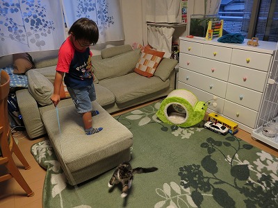 自分のおもちゃをCooに差し出した。 |
