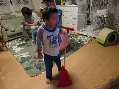 ちり取りの柄をマイクスタンドに?! |