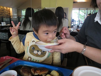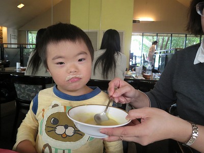 アニたボンが要らないスープをもらって・・・。 |