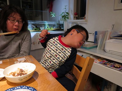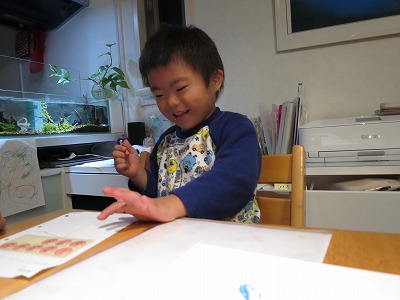 夜、自ら公文をやりたいと、H。 |