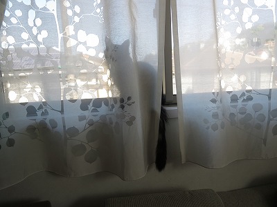 窓に外が好きなCoo。 枠が狭いので、足場を作ってとおママに言われたが・・・。 ここに足場はちょっと・・・。 |