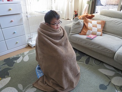 昼寝させようとしたが、断固拒否されたので、グルグル巻きの刑。 |