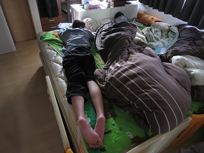 朝飯を食べてS、喉が痛いとベッドに潜り込む。 来週は学年末の試験なんじゃ・・・? |