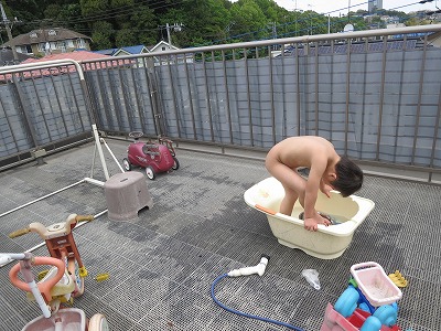 気温も上がり、午後は水遊び。