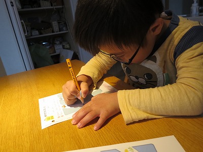 鉛筆の持ち方が悪かったHに、矯正具を用意して下さった。 体でポジションを覚え込ませるのだ。 |