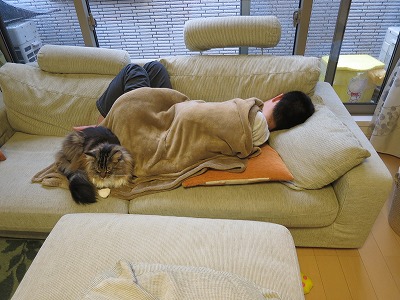 Sは帰宅後、夕方から突っ伏して寝てしまった。 |