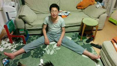 久々のストレッチ。 昨日は90度開かなかった、マヂで。 |
