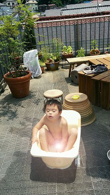 まだ水、禁止。 エア行水。 |