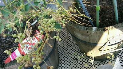 パクチー。 アブラムシとの格闘が終わったと思ったら、実ならして枯れやがった。 ヤレヤレ、やり直しだな。 |