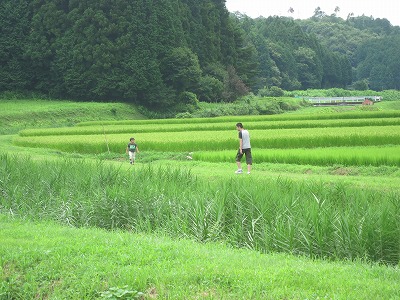 Sを連れ、宿場裏の田んぼを散策に出た。