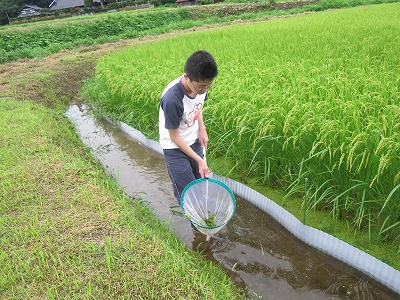 と、思いつつも、網を持ち、率先して田に向かうオレ。