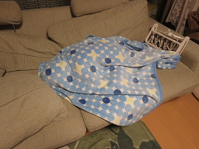 しかし怖くて怖くて、毛布をかぶるH。 |
