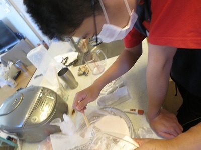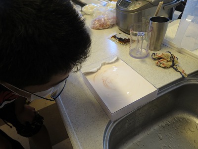 ・・・で水に色をつけ。 |