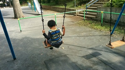 背中を押さないと動かないブランコ。 |