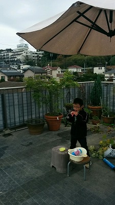 心の余裕ができたからか、Hに昨日のロケットをやらせてみる。