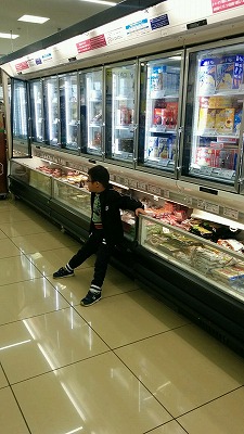 アイスの前にヘバリつくH。 |