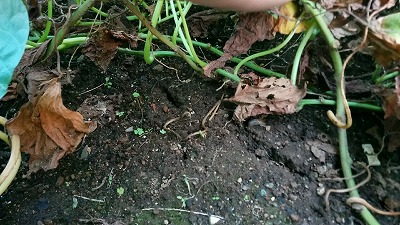 直植え安納芋。 地割れしているのは、芋が育ったせいかな? |