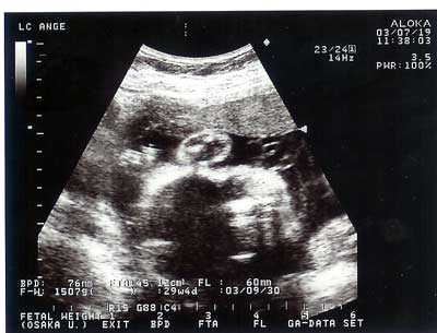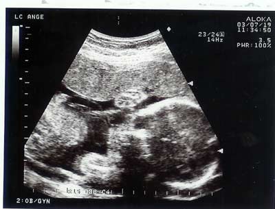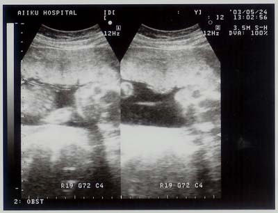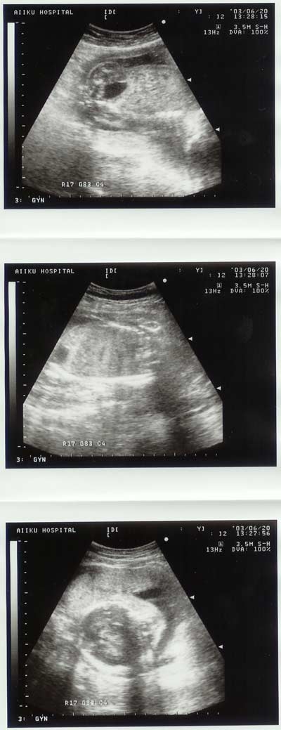平成15年5月24日(土) 最近は胎動もよくわかる。 しかし写真はよくわからん! 妊娠証明書をもらいました。 |
