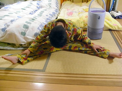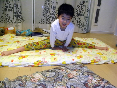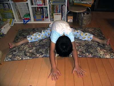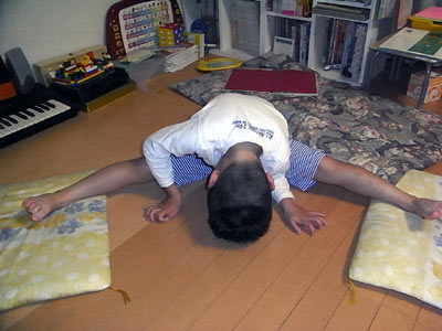 平成21年7月2日 運動塾の準備体操を見ても、 お、やわらかくなったな、そう思えるようになってきた。 これでまだ、子供では中くらいのレベル。 やっと「普通」になった。 目指せ完全開脚だ。 |